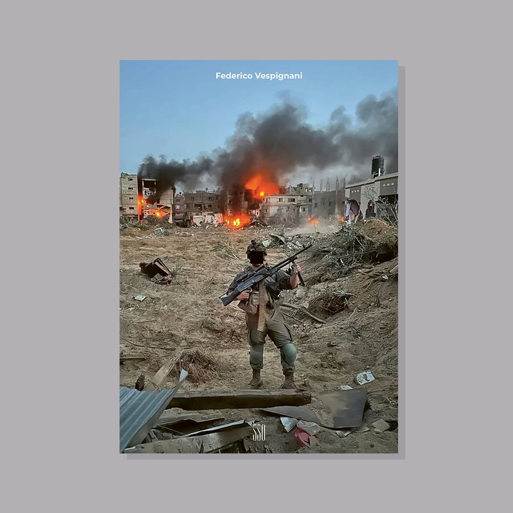 The diffuse trend by IDF male soldiers to publish war imagery on dating apps reflects, above all, a kind of cultural militarism within Israeli society and a process of erotic militarization. The images, often in the form of environmental portraits, have a sense of truth and immediacy. The male soldiers appear morally good and masculine. Sometimes, they frame their weaponry, and we see the result of their use in Gaza as a scorched-earth landscape. When they pose inside civilian homes, we see traces of what these houses used to be among the debris.
